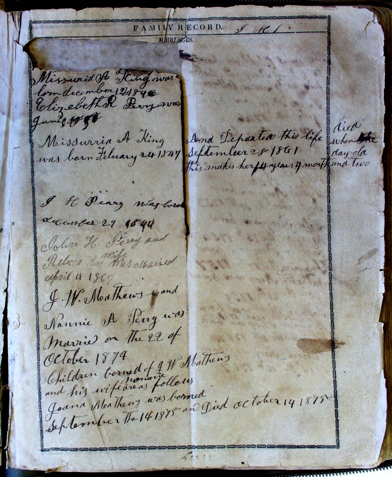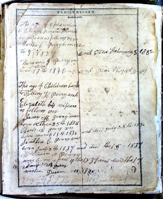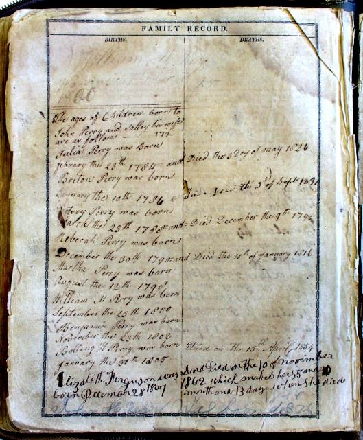 ******************************************************************************* Transcript of the Perry Family Bible with entries from 1746 to 1875